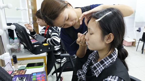 百美汇针对转行创就业的人群,开设了美容、美发、化妆、美甲等短期特色课程。