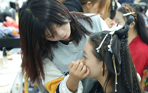 美丽的汉服造型背后,都离不开化妆师们的巧手。