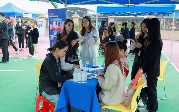 学校形成了企业和学生之间的良性机制,校园招聘会、直招会成为了校园的常态,学生足不出校就可以预订企业岗位,拿到心仪的offer。