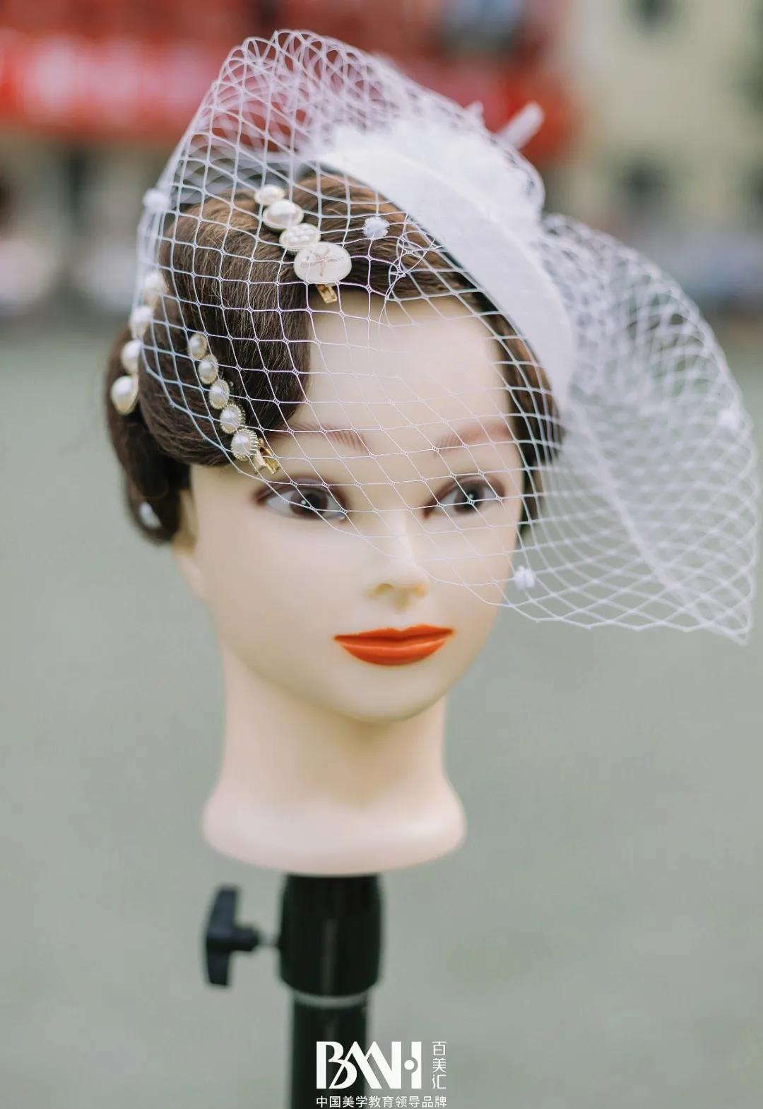 运用卷棒烫卷,干净的手推波盘发,珍珠元素的饰品永远时髦经典,结合面纱和帽子点缀高级感满满。