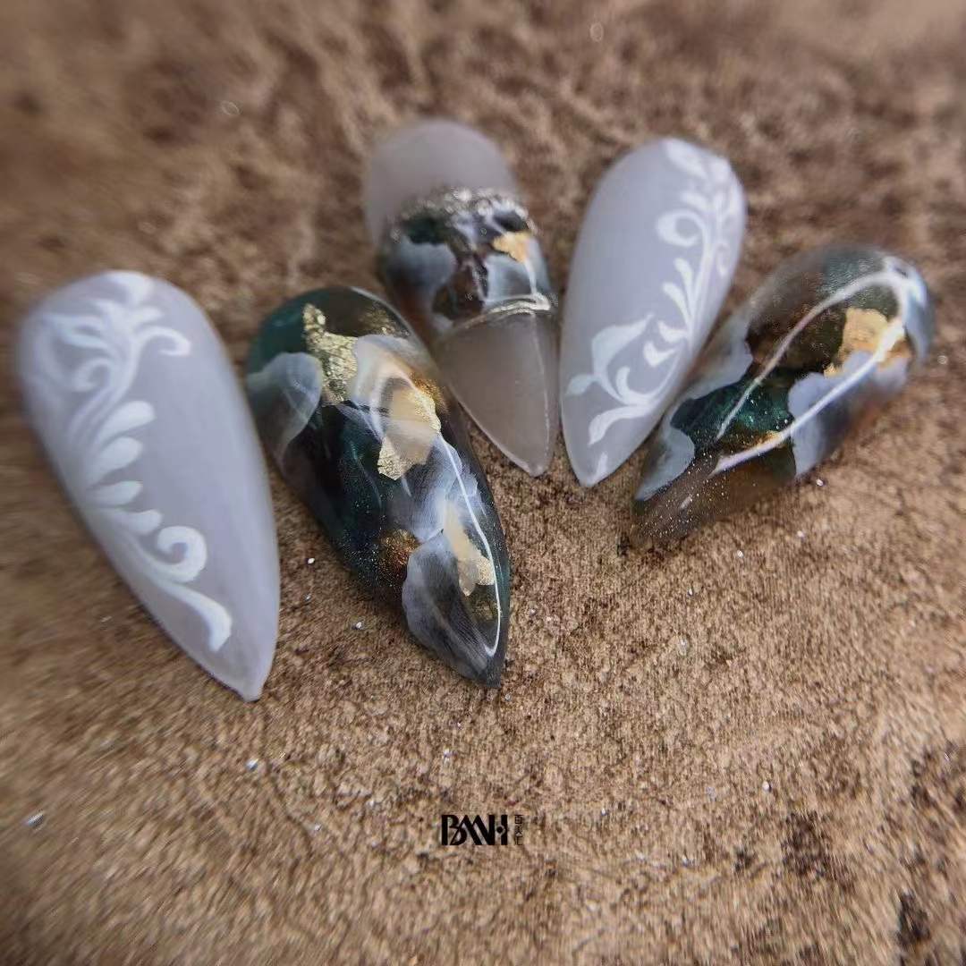 图腾元素的美甲款式很有地域风情,代表着自然 神圣 神秘 像是在举行一种仪式,质感之间的碰撞 都是独一无二的自然流露