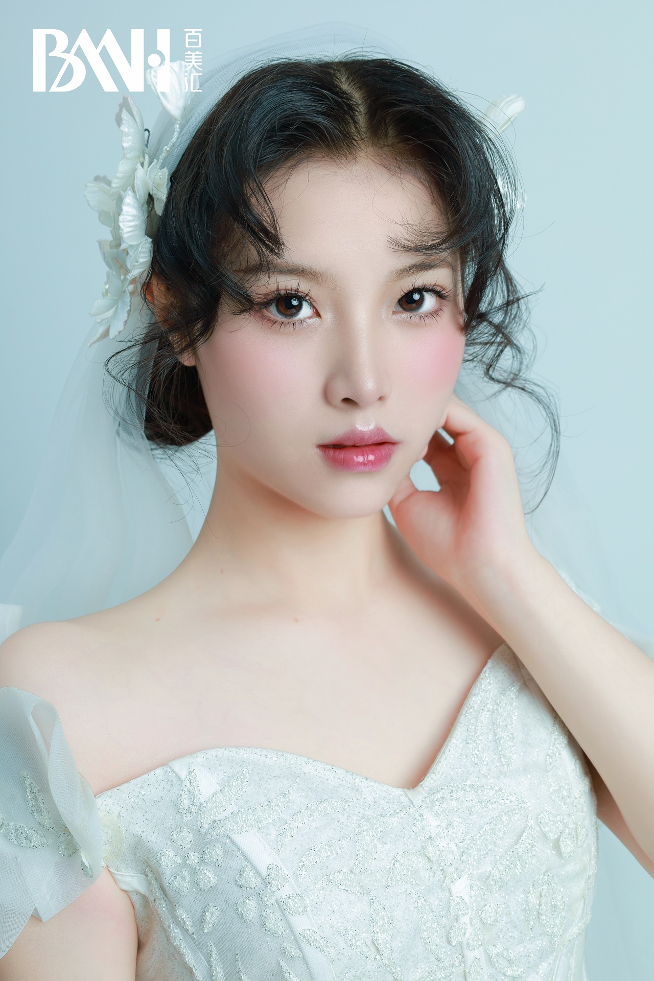淡雅清新的妆容,自然略带凌乱的发型,透露着不拘一格的美丽。