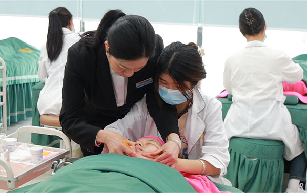 5. 整个面部拨筋过程中,美容师会根据顾客的面部肌肉走向,有节奏地进行操作,每个部位重复多次。