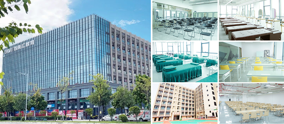 百美汇拥有可容纳1000余人的独立教学场所,目前,百美汇拥有美容、美发、化妆、美甲等空调教室50余间,以及篮球场、排球场、兵兵球场等学生课外活动场所,还引进了多媒体教学设备,购置了一大批烫、染、焗的先进工具以及多功能高端设备,以确保最佳的教学品质和教学质量,努力将百美汇打造成美学教育知名品牌。