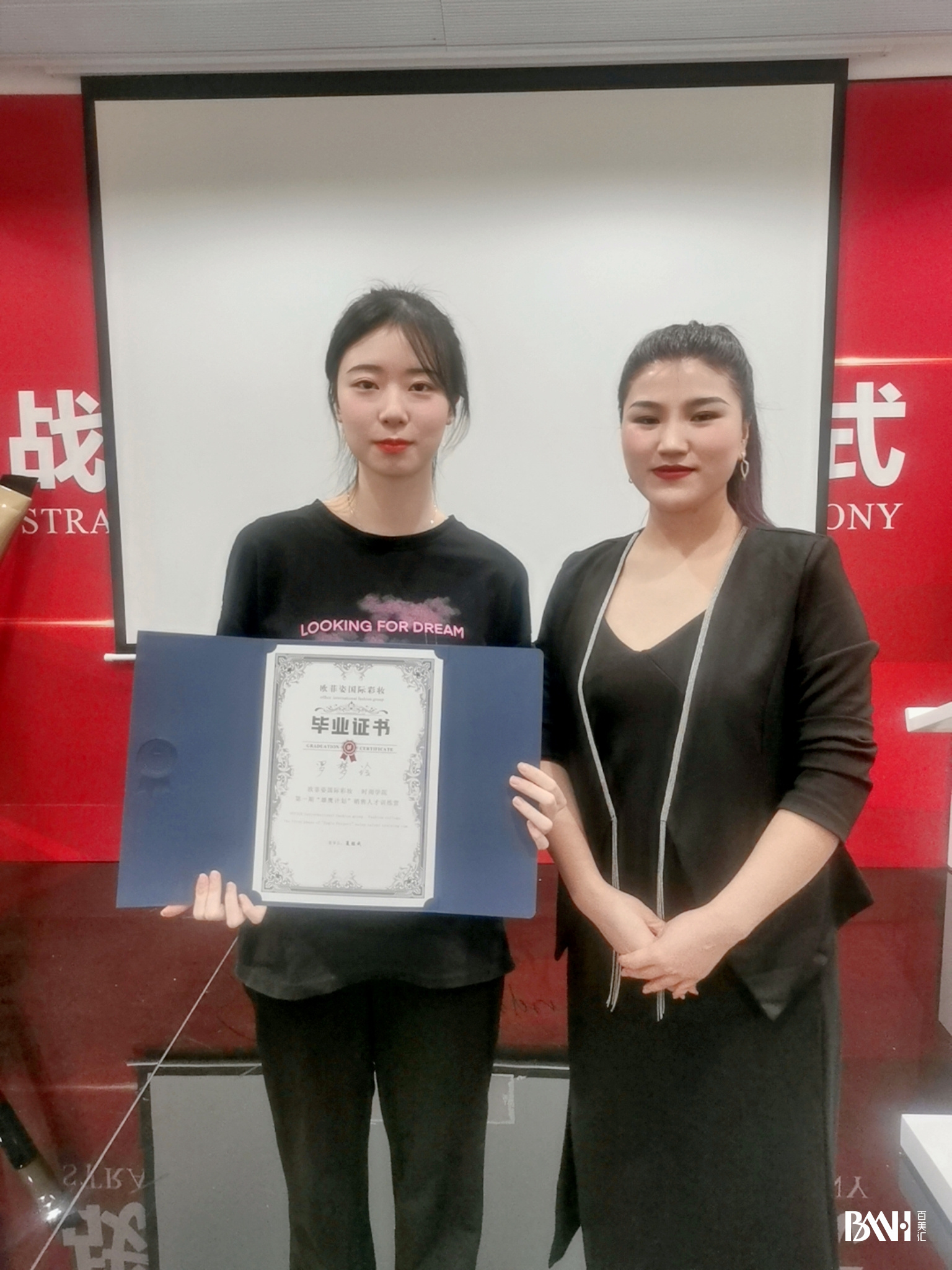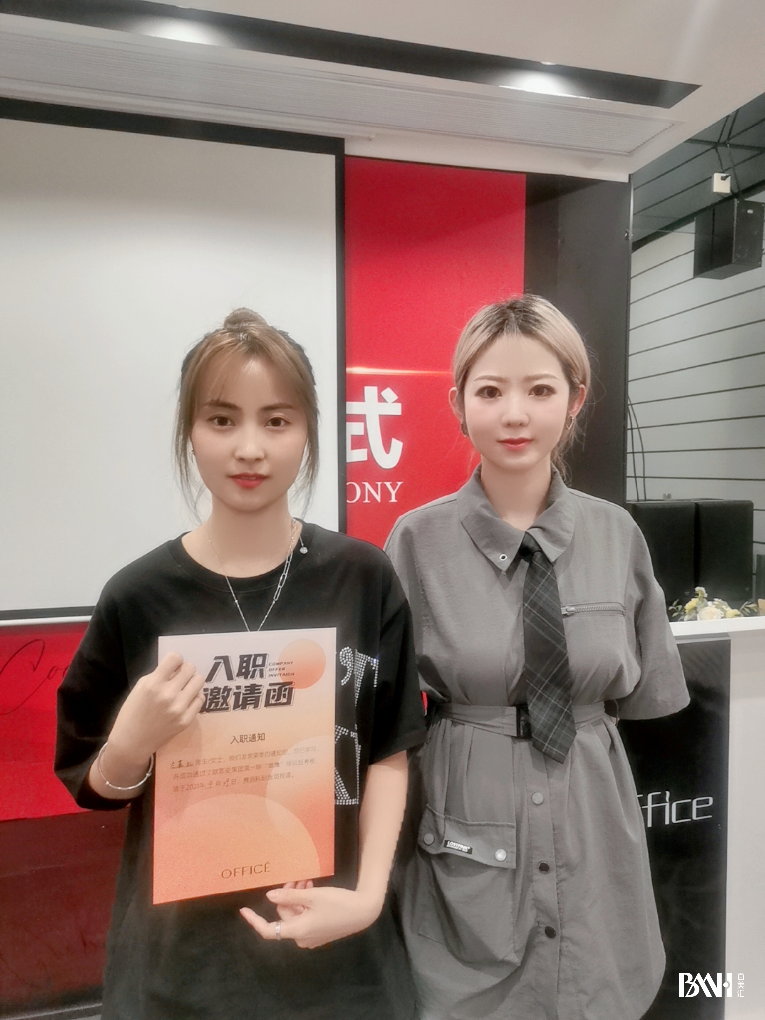 在就业回访的第一站,就业老师来到欧菲姿企业。百美汇彩妆高级班的学员们刚刚在这里入职,并进行了培训。