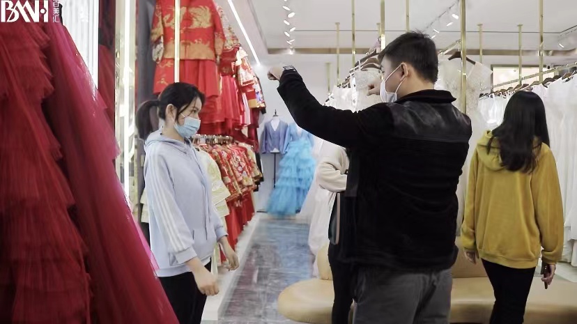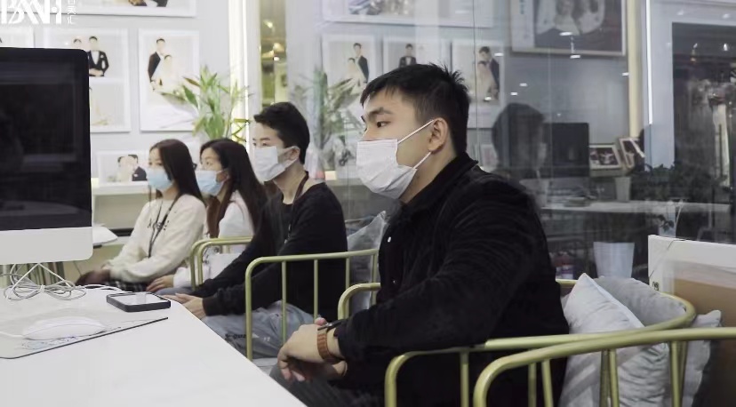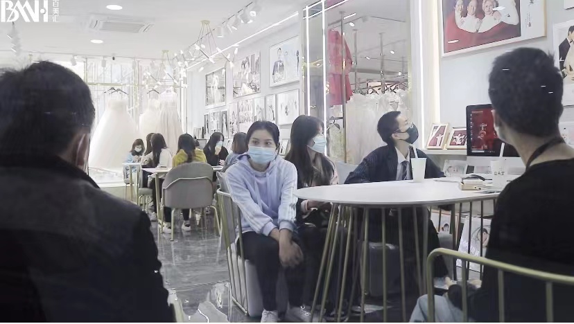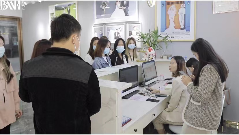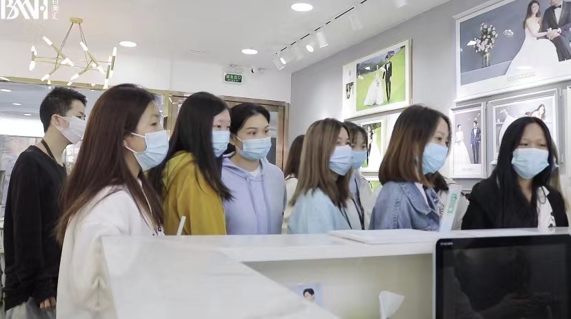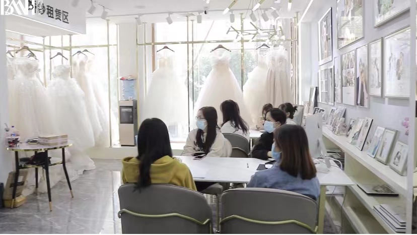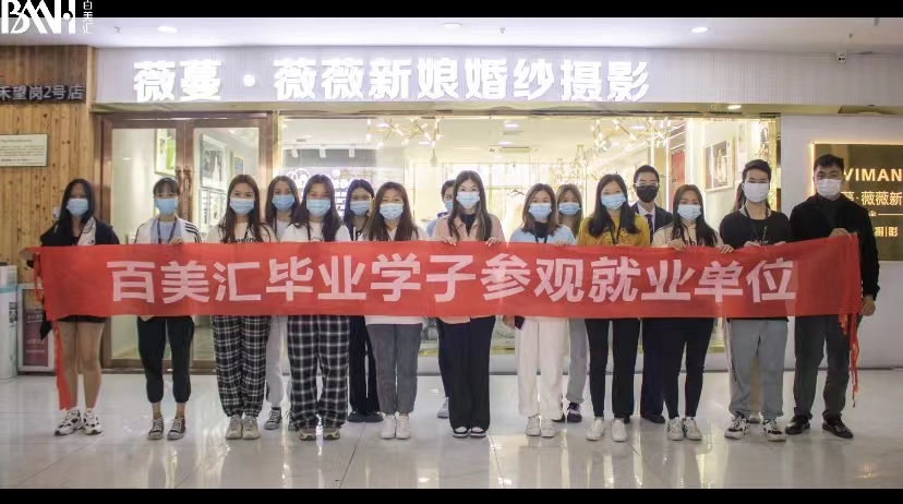 在薇蔓婚纱摄影店,同学们参观了店铺环境,对店内作品风格以及工作内容、企业文化、薪资待遇各个方面都有了一个了解,这也是企业参观的一个重要目的。