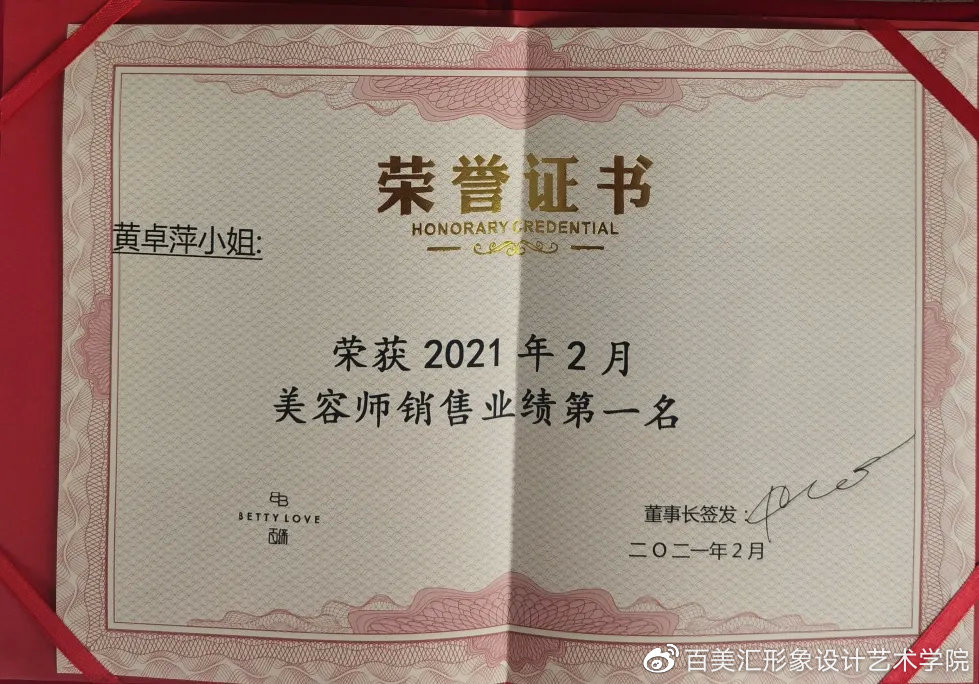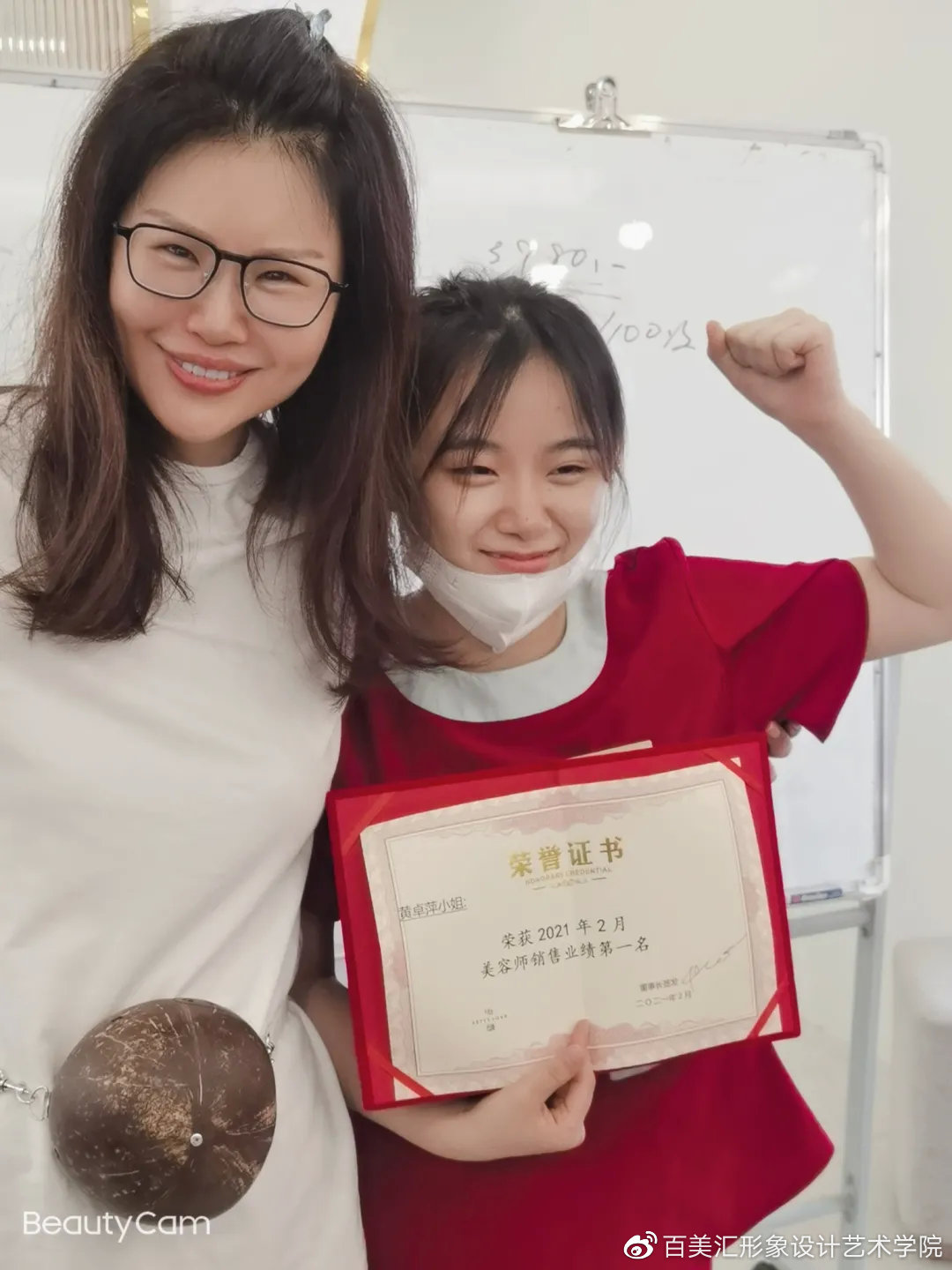 在学校的黄卓萍学习非常认真,毕业之后通过学校推荐来到百缔美容就业,仅仅两三个月的时间工资加上奖金就已经月入过万了!