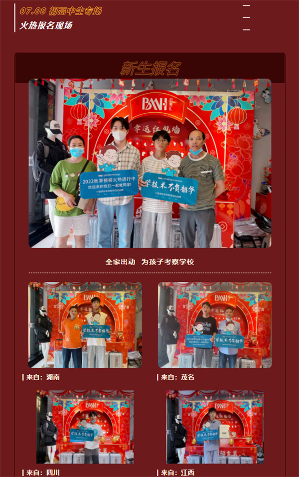 初高中生成绩陆陆续续公布,百美汇迎来了招生报名热潮,每天前来咨询报名的学员,络绎不绝。提前交过订金的同学,在参观完校园环境之后,怀着对未来学习生涯的憧憬,办理相关入学手续;首次来学校参观的同学和家长,在招生办老师的带领下,参观体验,感受实训课堂魅力;针对家长和学生提出的问题和疑问,职业规划老师耐心为大家答疑解惑,提出具有针对性的建议;根据同学们的兴趣爱好,选择合适他们的专业。