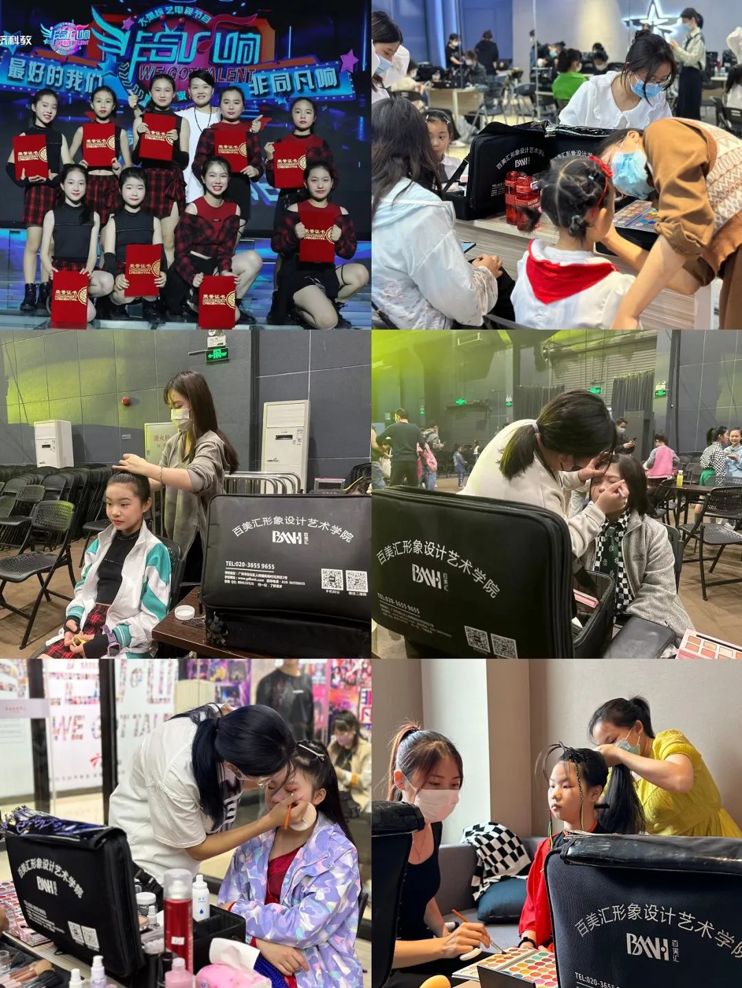 百美汇彩妆学员受邀前往广东电视台,为节目提供化妆造型支持。说一万次不如练一次,学员们珍惜每一次实战的机会,力争做到极致,丰富自己的实践经验,为以后就业打好基础。