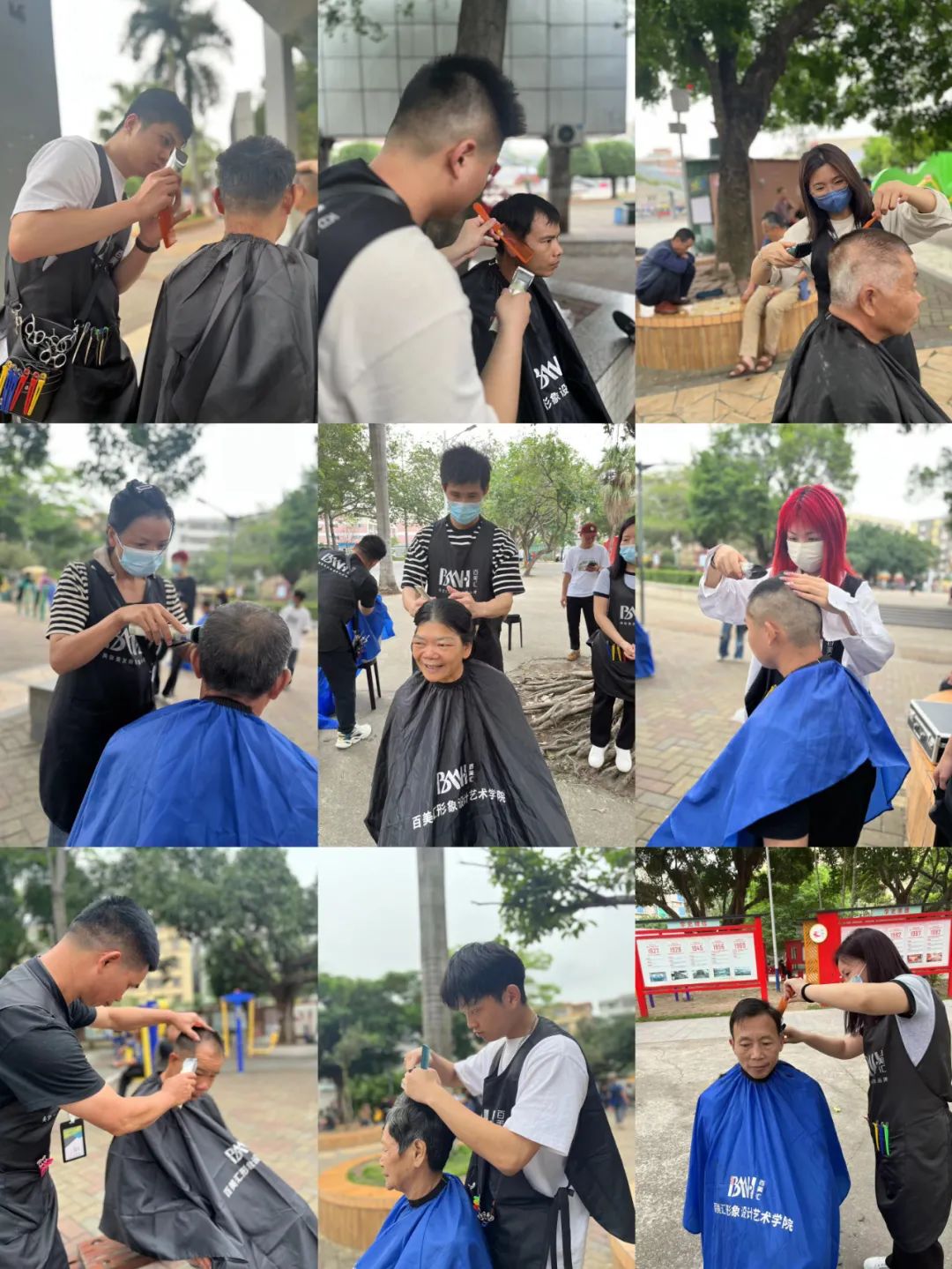 实践出真知,学技术最重要的就是实操。为发扬奉献精神,促进社会文明,美发班学员组成爱心义剪服务队走进社区,为社区居民们提供公益理发服务。