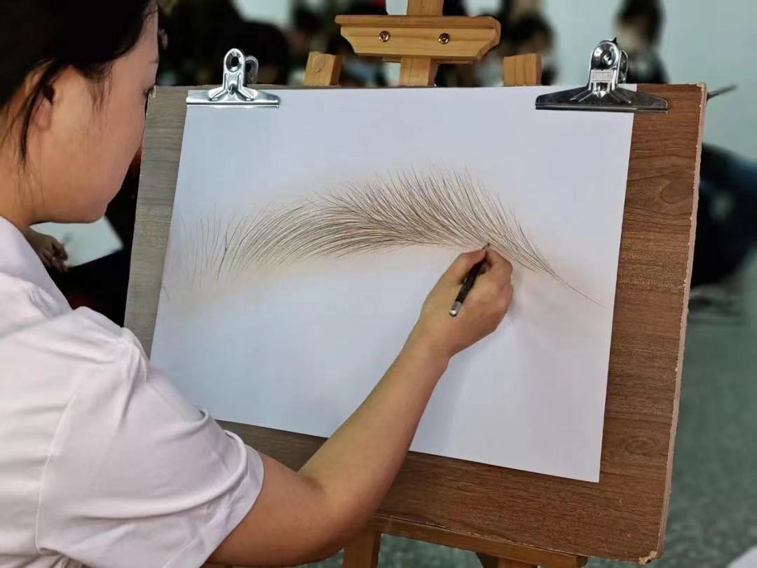 王老师一步步讲解技术知识、美学基础和注意事项,运用素描的方法,一笔笔画出灵动的线条眉!纸上逐渐呈现出眉毛的美感。