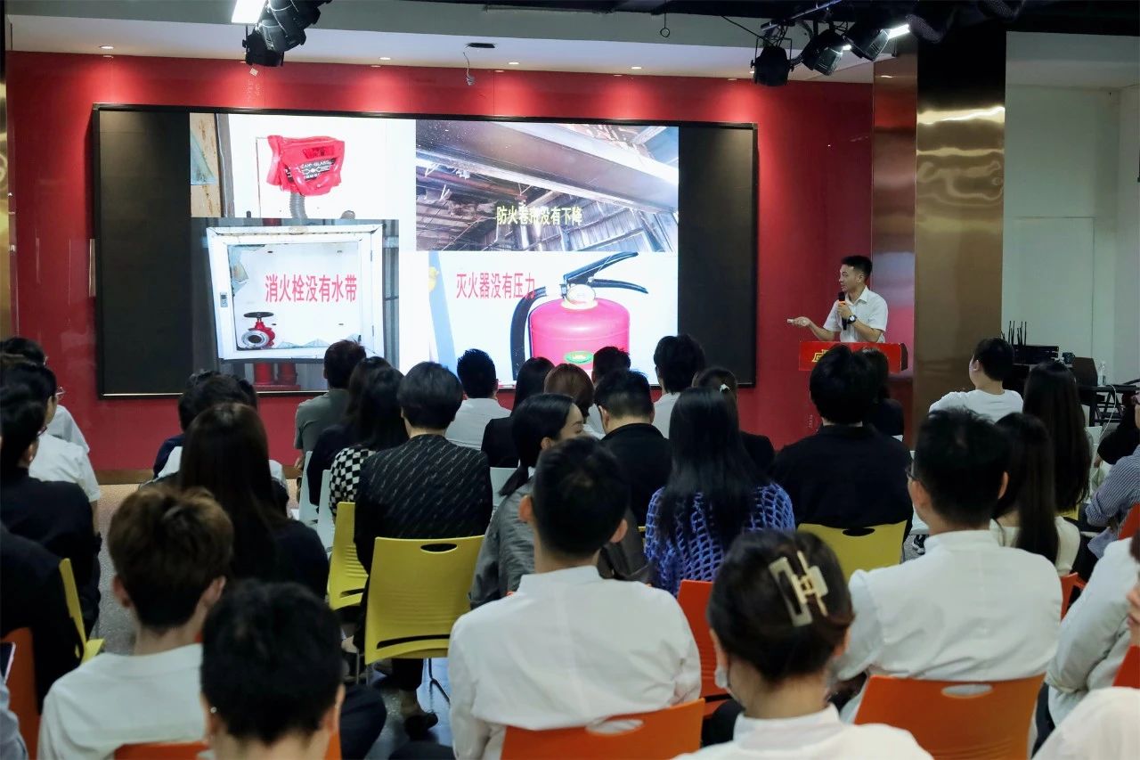 李老师采取消防知识讲解、趣味问答等生动活泼、简单易懂的形式,结合实际生活中的真实案例和现场图片,介绍防火灭火常识,使在场教职工进一步了解消防知识,掌握初期火灾处置、火场逃生以及预防火灾的基本方法,打牢消防知识基础。