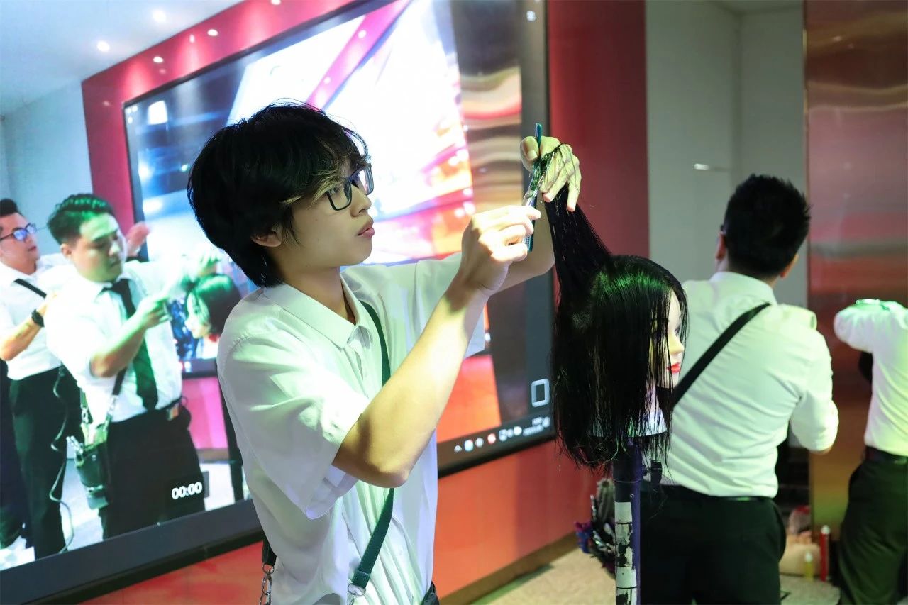 最后,同学们围观发型成品、欣赏并拍摄照片,同学们直观感受到每位老师的风格、技术实力,加深对美发专业的了解,同时了解当下的流行趋势、规范的操作、美发师必备的专业技能等。