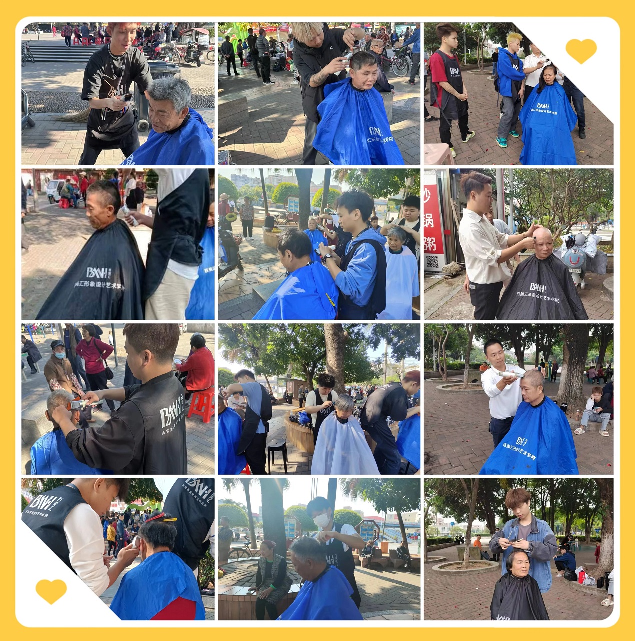 一推一剪皆是情,用所学知识和技能,做力所能及之事。理发过程中,学员耐心地询问老人对理发的要求,或剪或剃,细心地为每一位居民修剪头发。