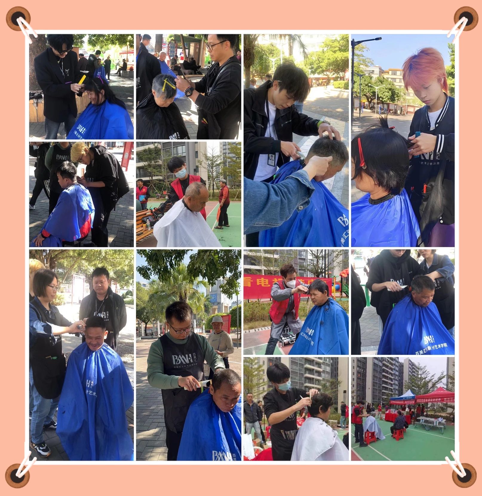 一推一剪皆是情,用所学知识和技能,做力所能及之事。理发过程中,学员耐心地询问老人对理发的要求,或剪或剃,细心地为每一位居民修剪头发。