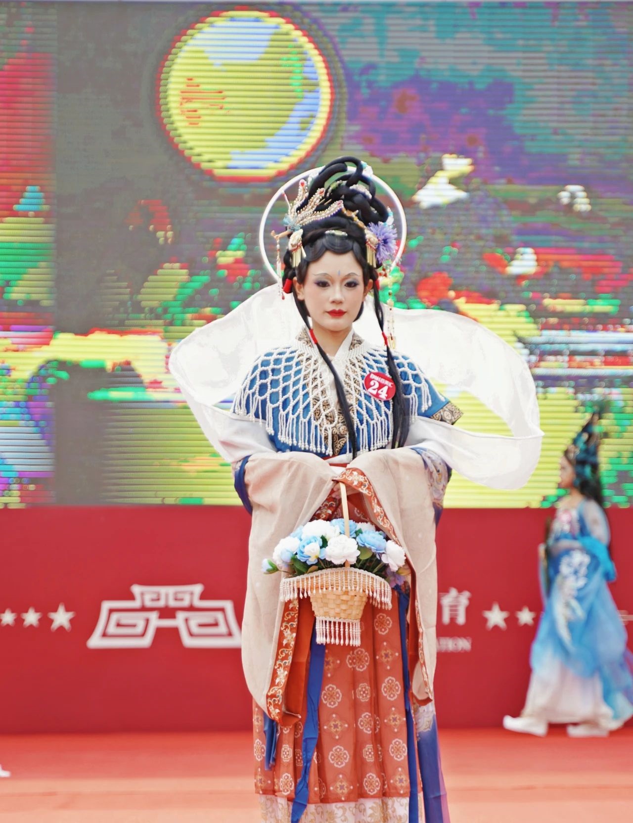 妆造完成后,开始了舞台走秀展示环节,参赛学员的模特们身着华丽的汉服,妆容精致,举止优雅。她们的作品中,既有古典韵味浓厚的传统造型,也有融入现代元素的创新设计。这些作品不仅展示了参赛学员对汉服文化的深刻理解和热爱,也体现了他们对彩妆艺术的独特见解。